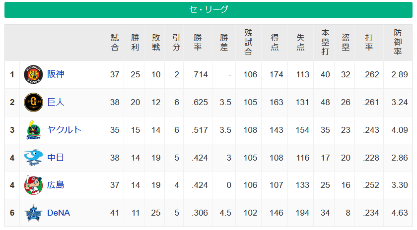 プロ野球2019現在チーム成績と残り試合数や日程を考慮の予想順位は Cs出場の確率は巨人denaと広島 Fun Time